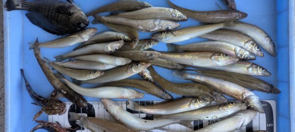 シロギス(堤防) 2025年12月10日(水曜日)堤防投げ釣り宮川丸 釣 果 : 36匹 大きさ : 11~18cm 場 所 : 各堤防 コメント 朝からアタリ有って良かったです。他にカサゴも数釣れていました。 Facebook で共有するにはクリックしてください (新しいウィンドウで開きます) Facebook クリックして Line で共有 (新しいウィンドウで開きます) Line クリックして X で共有 (新しいウィンドウで開きます) X いいね:いいね 読み込み中… 関連