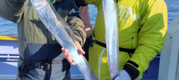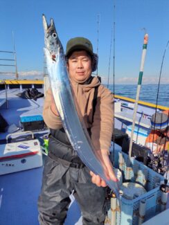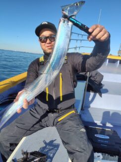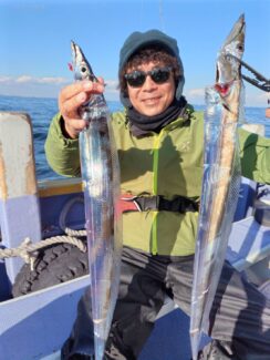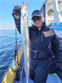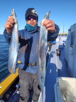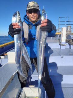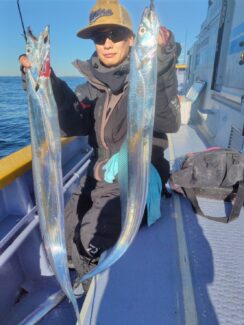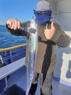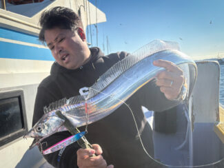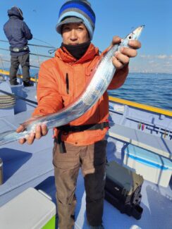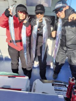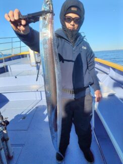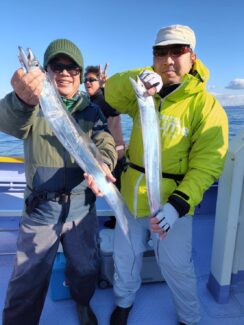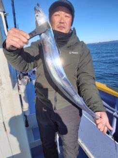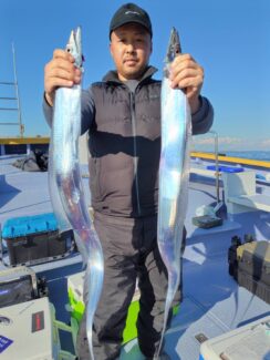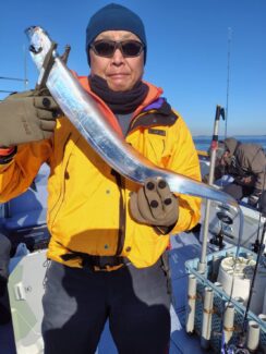 本日初釣りにたくさんのお客さんおいでいただきありがとうございます。ナギ陽気で朝から反応有ってアタリもポツポツ釣れ良い感じのスタートきれましたが途端にアタリ厳しくなったりでタチウオに翻弄されましたが、初心者の女性の方は8本釣り全体に釣れた感じでよかったです。